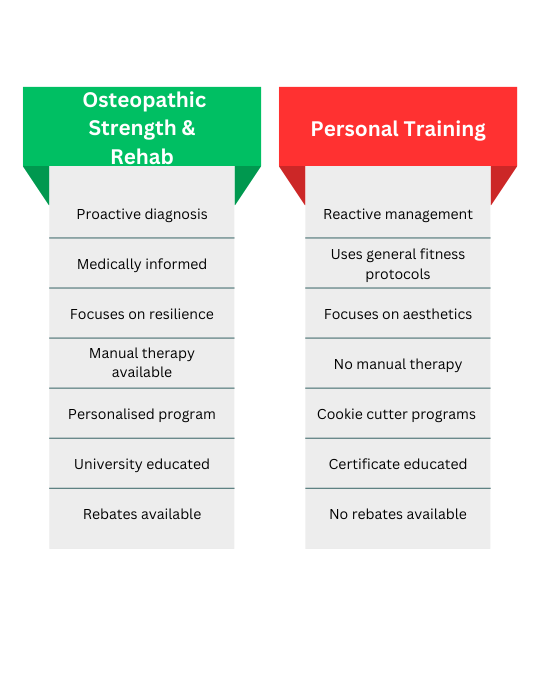Your Osteopath doesn't just treat your pain, they help you build the strength and function to keep it from returning. This service is dedicated 1-on-1 coaching to build lasting resilience.
